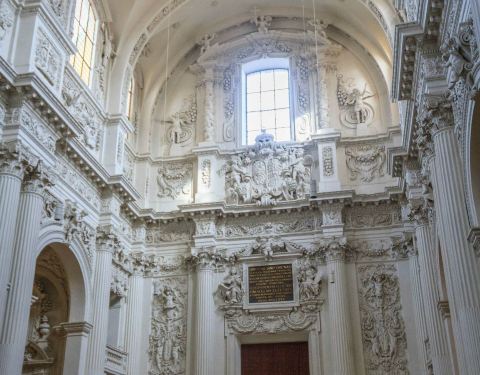特埃蒂娜教堂内部大到拱门、立柱,小到花纹,满眼洁白,很是震撼特埃蒂娜教堂内部大到拱门、立柱,小到花纹,满眼洁白,很是震撼。这个教堂没有那么多的金银装饰,但也不能因此说它简约,雕刻还是很繁复的。