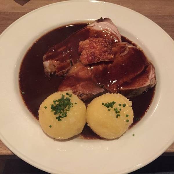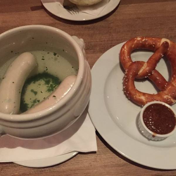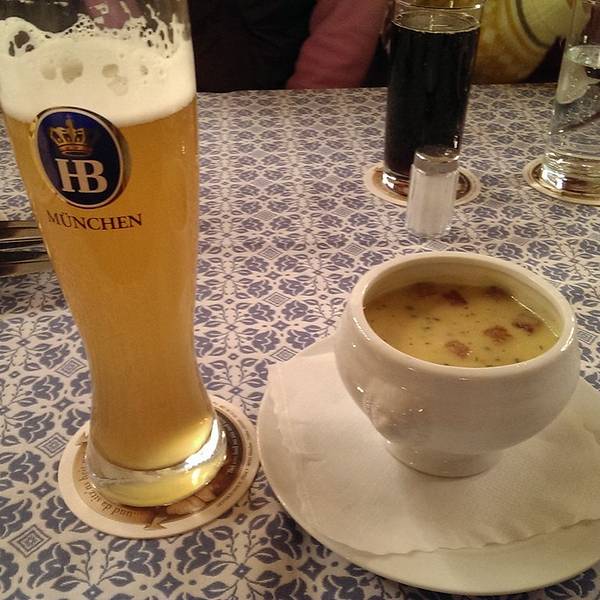 来HB不下5次,每次都感觉非常热闹,人多:本地人,外地和外国游客都很多。谈笑声伴着小型乐队的乐声。服务员忙碌穿梭在人群里,有时候会稍显不是那么耐心。没办法,谁让这里名声最亮呢。虽然德国其他地区的人们拿...来HB不下5次,每次都感觉非常热闹,人多:本地人,外地和外国游客都很多。谈笑声伴着小型乐队的乐声。服务员忙碌穿梭在人群里,有时候会稍显不是那么耐心。没办法,谁让这里名声最亮呢。虽然德国其他地区的人们拿巴伐利亚人开玩笑的故事太多太多,而这里的人既没有英国绅士的精致也没有法国淑女的优雅,但是就这样在粗犷的木桌子上谈笑,大口喝啤酒,啃肉的快意也是这群生活在阿尔卑斯北麓的热情人民最让人羡慕的生活方式呢。烤猪膝是招牌菜,一般会配有土豆丸子,也可以加其他边菜,如酸菜或者有名的土豆沙拉。个人偏爱白肠,白瓷碗端上来只有两只,但解解馋足够。啤酒一定要点一升的,捧着大杯子,畅快地喝着自酿啤酒体会一把拜仁人的生活。