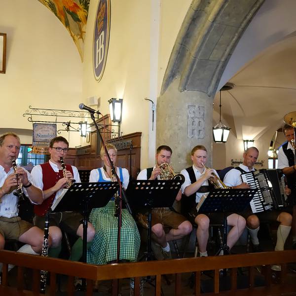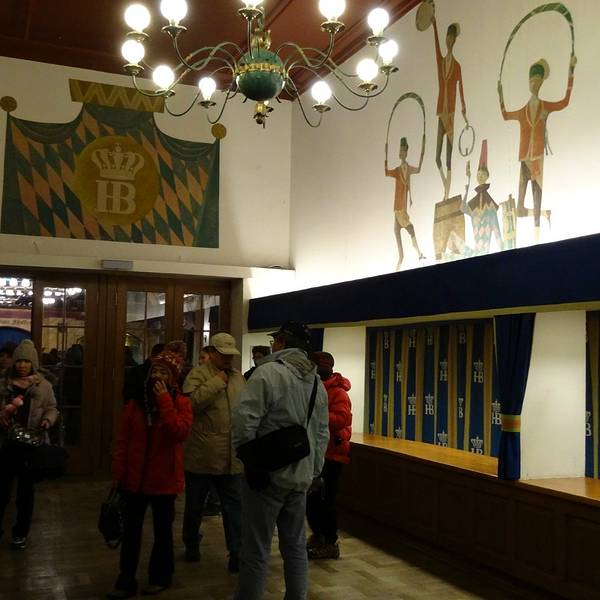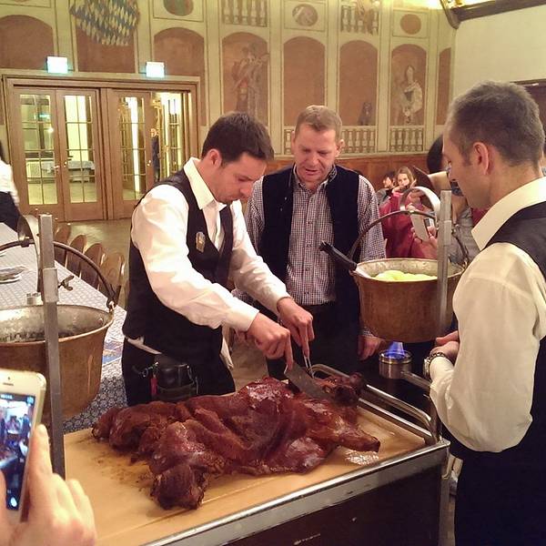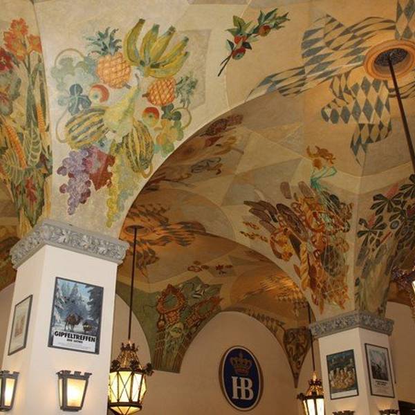 慕尼黑皇家啤酒屋,始建于1589年,是当时的皇家啤酒厂。整幢建筑最多可容纳5000人。啤酒屋供应其酿造的HB啤酒。每天都有近万升的啤酒从这儿运往大大小小的酒铺、酒馆、宴会厅以及啤酒园。几百年来,皇家啤酒屋成了名人政客聚会的最佳地点。茜茜公主、歌德、列宁等都曾是啤酒屋的嘉宾。位于玛丽恩广场附近,人很多。猪肘餐外酥里嫩,味道相当好,并不会很腻,配一杯正宗的慕尼黑啤酒,真是美味哦!啤酒馆的装修带有浓厚的巴伐利亚风格,一走进屋内就会被热烈的气氛所感染。整个空间非常大,全部是长条的大饭桌,来自五湖四海的认识的不认识的朋友们坐在一起,大杯的喝啤酒,大口的吃德国特色美食,气氛被驻场乐队一次次带向高潮。