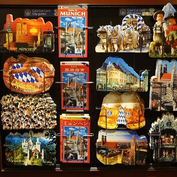 传说中的猪肘,旁边那个本来以为是土豆球,吃了之后发现是米糕那种质感,但是有土豆的口味,估计是土豆基础上在加了别的做得。猪肘外焦里嫩,味道鲜美,哈哈,因为大概有1周没吃这样的大荤了。硕大的一杯,姐还真是有点HOLD不住呢。。大肘子来了,那个爽,,在欧洲真是很难吃到这么大的肉肉。。直呼过瘾。。肘子13.9欧,啤酒8欧,价格尚可,主要感受感受这个气氛。整个HB2个女生的真不多,还是亚洲面孔。身边全是金发碧眼的欧洲人。HB门口还有一个售卖纪念品的小店,很喜欢这里的冰箱贴和杯子,真的想都顺回去。结果怕杯子不好拿,就带了2个冰箱贴。慕尼黑的初印象非常的不错,第二天的重头戏是期待已久的“宁芬堡”和”慕尼黑啤酒节“