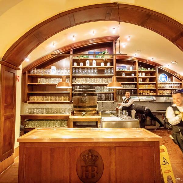 位于慕尼黑老城东部,玛丽恩广场东北,从玛丽恩广场步行约五分钟可到达。宫廷啤酒馆始建于威廉五世时期的1589年,原为宫廷专享,1828年起对普通市民开放,并因一首名为“慕尼黑有座宫廷啤酒馆”的歌曲而闻名于世,成为游客来慕尼黑必到的地方。宫廷啤酒馆为后文艺复兴式建筑风格,底层是一个能容纳一千人的大型宴会厅。这里每天固定时段表演管乐,狂欢节时举办假面舞会。啤酒馆的后院绿树成荫,气候温暖时开放,让游客能在市中心就体味到巴伐利亚啤酒花园的怡然情境。不过,由于宫廷啤酒馆总是充斥着各方游客,大多数时间显得过于喧闹,因此虽然具有相当传统,但却并不是巴伐利亚啤酒馆最正宗的气氛。一层非常的大,基本上没有位置,很多都是拼桌的。但不影响大家喝啤酒