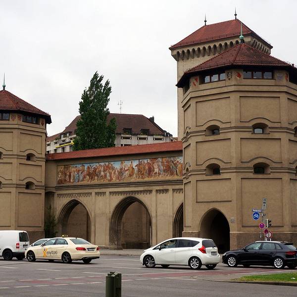 慕尼黑唯一保留的中世纪的城门,城门的大型彩绘壁画不可错过。