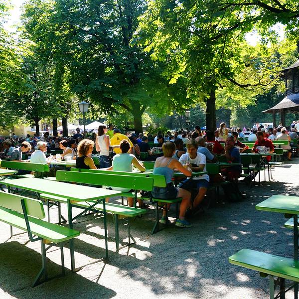 在英国花园里最出名的要数中国塔(Chinesischer Turm),不要看它的名字便在脑中描画它的样貌,因为当你见到它的真容时大概绞尽脑汁也无法与中国凉亭挂钩。在欧洲宫廷,漂洋过海而来的中国商品令贵族和有钱人大开眼界,他们对传说中遥远的东方国度充满好奇,而在缺少真正中国经验的古代欧洲人的想象里,大概这样的一个多层圆顶的圆塔就是代表了高大上的中国风吧。无论如何这些都不妨碍中国塔成为英花园最负盛名的建筑,同时这里也是最受欢迎的茶楼餐厅和啤酒花园。推行美食艺术文化三要素的结合,中国塔餐厅为各国游客提供创意料理和景点巴伐利亚菜。