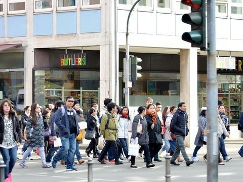 这条街是法兰克福新城最重要的一条大街,充满了活力和商业的氛围,在这里是购物者的天堂,这条大街两端密密麻麻的全是各种商店,还不错。