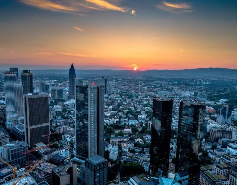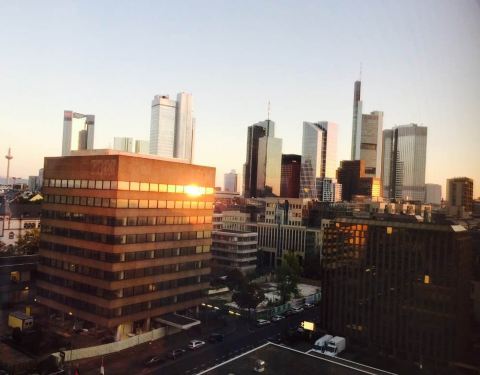 登上楼顶天台,法兰克福城市美景一览无遗。登高望远,看日落,也是我非常钟爱的我们打算在傍晚的时候去美茵塔看日落。登上楼顶天台,法兰克福城市美景一览无遗。看着太阳慢慢坠入地平线,周围的云都被染上了绚丽的橘色。登高望远,看日落,也是我非常钟爱的。