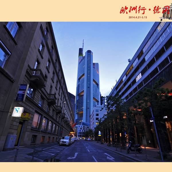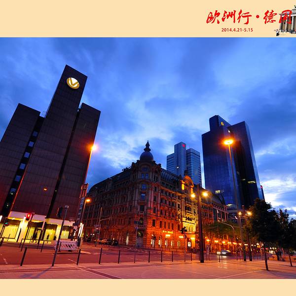 法兰克福银行区的夜景,入夜后基本上属于“无人区”的……。它建于1994年,曾为欧洲最高的摩天大楼法兰克福的银行区……