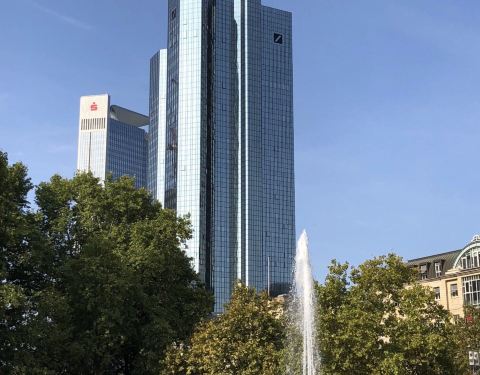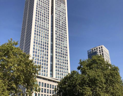 法兰克福德国商业银行大厦是金融区内最高的建筑之一。建筑高达140多米,共有48层高,是德国最重要的银行总部大厦。大楼顶层有观光平台,在这里可以俯瞰整个法兰克福市景。