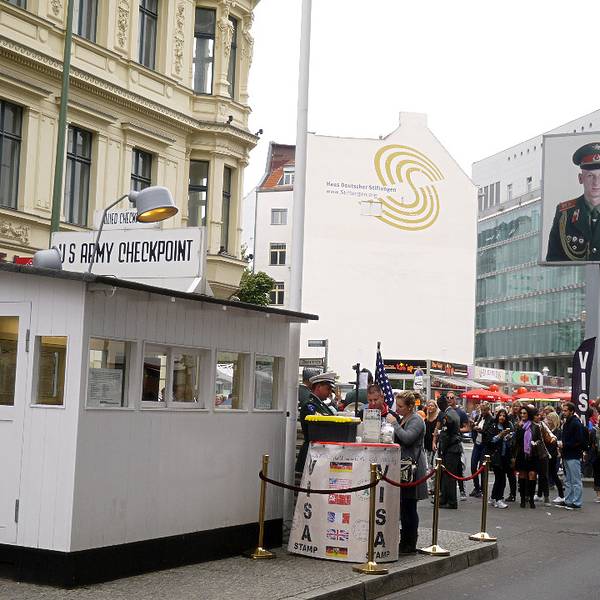 查理检查站位于弗里德里希大街和Zimmer大街的交界处,是冷战的见证和象征,从1961年到1990年,这里是盟军、非德国人和外交人员在东西柏林之间通行的关口。 现在这里被周围高大的现代建筑环绕,只剩下小小的一段柏林墙残垣,在面向西柏林的一侧树立着以英俄法德四种文字标识的有名警告牌:“You are now leaving the American sector.”(“你现在正在离开美国防区。”)目前人们看到的是复制品,原件被保存在毗邻的查理检查站博物馆里。 在残留的柏林墙有工作人员装扮的俄国和美国“大兵”,花2欧元就可以与他们合影。如果你还想了解更多有关检查站,柏林墙,和两德分裂时期的历史,可以去旁边的查理检查站博物馆看一看。 博物馆位于查理检查站的后方,门面不大,但里面别有洞天,收藏的史料非常丰富,以黑色幽默地方式展现了这段沉重历史。在这里你可以看到当年试图翻越柏林墙的人们使用的各种的道具:有逃往西柏林过程中使用的自制热气球、地道、汽车隐蔽隔间及单人潜水艇等,完整记录了那些民主德国公民的勇气和机智。此外还有关于当年这些崇尚自由和人权的的个人资料和详细记录,是来柏林不可错过的景点之一。 除此之外,查理检查站博物馆开设了国际非暴力人权运动展厅,主题包括从甘地到莱赫·瓦文萨等领导的世界知名人权运动,在这里你可以看到圣雄甘地写的日记原稿、使用过的木屐,用于起草东欧《77宪章》的打字机等。 查理检查站设有纪念品商店和咖啡馆,此外,在博物馆外也有诸多纪念品店,其中带有柏林墙碎片的纪念物很特别,可以购买留作纪念。
