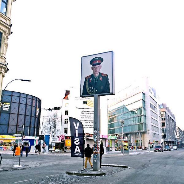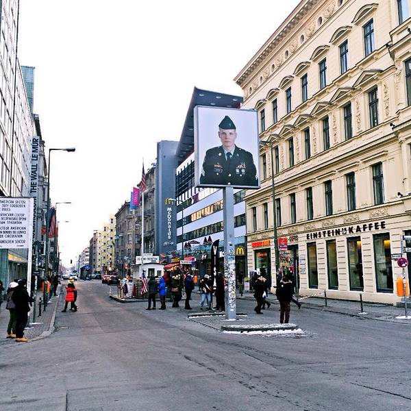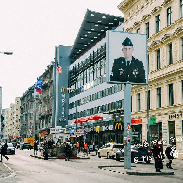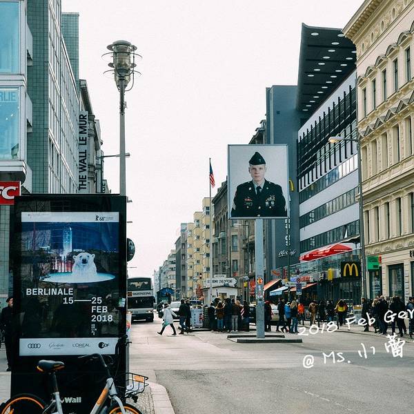 二来这里并不是查理检查站的真正地址噢 真正的查理检查站在后面一个街区 大概是因为太多的游客想看这里 就在此特设了一个一段 柏林 墙遗址大概是非常热闹的打卡地之一了因为查理检查站是冷战时期 两军唯一需要天天面对面的地方 所以颇受后人欢迎