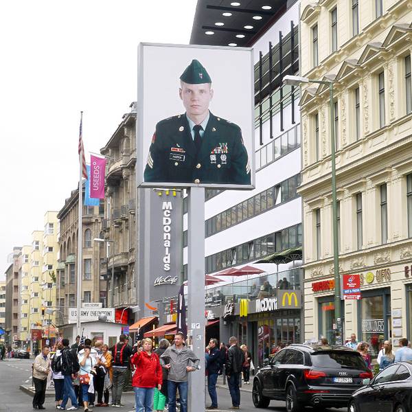 查理检查站在曾经的东西柏林分界线上,还留有一小块城墙。