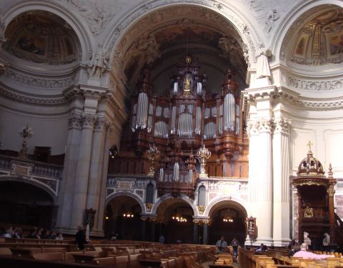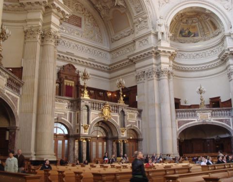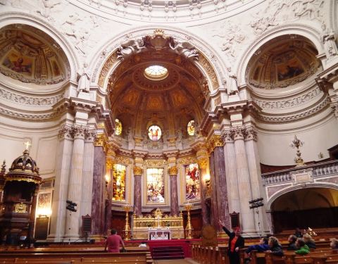 爬上去参观了一下穹顶,门票也是比较贵的。 柏林大教堂的内饰极其华丽甚至达到了浮华的程度德国的柏林大教堂在二战中被严重损坏,德国人精心地休憩了这个教堂,直到现在呈现的修旧如旧的感觉。柏林大教堂外观非常有特点,三个绿色的穹顶很远处就能看到,圆润丰盈的绿顶一看就是文艺复兴时代的产物,是巴...德国的柏林大教堂在二战中被严重损坏,德国人精心地休憩了这个教堂,直到现在呈现的修旧如旧的感觉。柏林大教堂外观非常有特点,三个绿色的穹顶很远处就能看到,圆润丰盈的绿顶一看就是文艺复兴时代的产物,是巴洛克风格的建筑,跟哥特式的尖顶的科隆大教堂完全不同。 柏林大教堂的内饰极其华丽甚至达到了浮华的程度。它的室内金碧辉煌,装饰着线条复杂的柱子和精美的壁画,甚至柱头都是镀金的。爬上去参观了一下穹顶,门票也是比较贵的。 展开