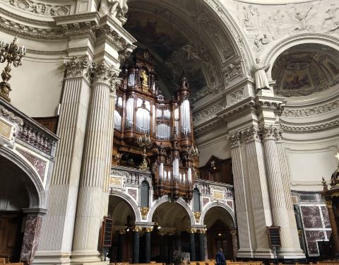 景色非常棒,一定不能错过啦!往教堂内部走,拾级而上,能步行至教堂的穹顶处,俯瞰整座城市门票为十欧元的柏林大教堂,内部装饰细致且夺目,如果下午晚些抵达的话还能感受到教堂内的管风琴演奏。往教堂内部走,拾级而上,能步行至教堂的穹顶处,俯瞰整座城市。景色非常棒,一定不能错过啦!