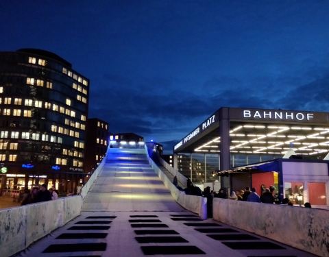 波茨坦广场是新柏林最有魅力的场所。其引人注目的建筑集餐馆、剧院及电影院等于一身,使它不仅吸引着观光的游客,也吸引着柏林人经常到此一游。而以前的波茨坦广场只成为现在广场中的一小部分。 起初的波茨坦广场只有一个十字路口。之后,在这里建起了波茨坦火车站,从而发展成交通繁华的地区之一,也成了首都生机勃勃的都市生活的代名词。如今矗立在广场中心的是超现代化的戴姆勒·克莱斯勒区及索尼中心,西南方散布着柏林画廊、柏林新国家美术馆、柏林爱乐音乐厅等文化设施。 1993年-1998年间,这里建起了戴姆勒·克莱斯勒区,这里有15幢出自现代建筑师之手的现代化大楼,其中有办公楼、商店、饭店、居民住房、餐馆、音乐剧院。22层高的德比斯大楼(Debis-Haus)由累措·皮亚诺(Renzo Piano)设计,其巨大宽阔的正厅内设有让·丁格利(Jean Tinguely)的机械雕塑"Meta-Maxi"。与其相连的阿卡丹购物中心(Arkaden)内有110家商店和30余家餐饮设施。 2000年,座落在肯珀广场(Kemperplatz)的索尼中心(Sony Center)正式开放,索尼公司的欧洲总部设置在此。七栋大楼环抱在一起,被围成的中心区宽敞明亮,上有一带皱褶的蓬式玻璃顶盖,有“富士山”之称。这里拥有欧洲较大的3D影院Cinestar IAMX,屏幕高达20米。 如果喜欢现代艺术,可以移步去波茨坦广场西南侧的柏林新国家美术馆看一看,建筑本身就是一件雕塑艺术品,由现代建筑的先驱密斯·凡·德罗设计,周身由钢铁和玻璃打造,很值得一看。 另外,来到波茨坦广场,也千万不要错过大名鼎鼎的柏林爱乐音乐厅,这里是柏林爱乐管弦乐团的总部,这座带有醒目金顶的现代建筑由德国本土建筑师汉斯·雪龙设计,以较好的音效闻名于世。 波茨坦广场的北侧坐落着克尔霍夫大楼(Kollhoff-Tower),这座红砖外墙的高楼内有欧洲较快的电梯,游客可以乘此电梯登上25层观光露台,饱览柏林市的大气风光。