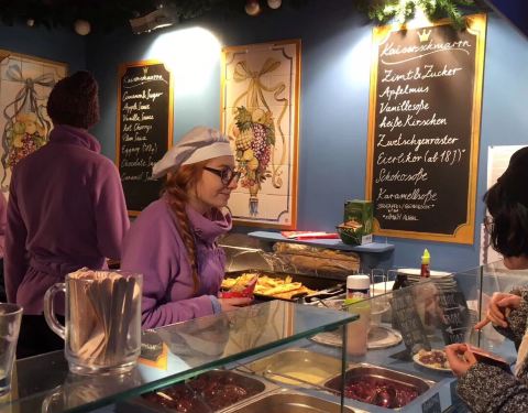 柏林的菩提树下大街是柏林最有名的街道。图林根烤肠,我认为是最好吃的烤肠。油煎饼是特色小吃柏林的菩提树下大街是柏林最有名的街道。需要买入场券的知名圣诞市场,果然都是精品店,高尚品质。买了像肥皂一样的奶酪,味道不错。油煎饼是特色小吃。图林根烤肠,我认为是最好吃的烤肠。