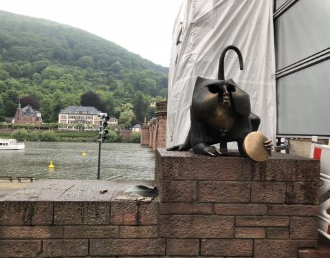 在老城区的老桥桥头有一只铜猴的雕塑。铜猴的手里拿着一面镜子,身边还围着两只老鼠。摸一摸铜猴手中的镜子会带来财富,握住铜猴伸出的手指会保佑你日后重返海德堡,老鼠是祝福你多子多孙的意思。