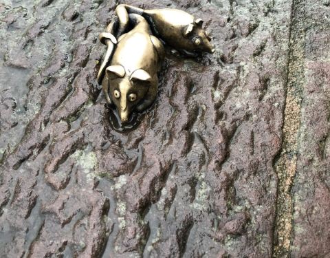 ...,传说摸了铜猴手里的镜子会有好运(当然大家都摸了摸)旁边还有一只非常小的小老鼠的雕塑,很是可爱