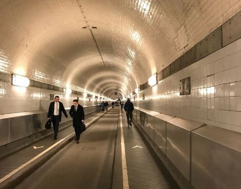 这个算是汉堡一个有特色的打卡点的,整个隧道建于海平面以下20多米的地方,总长度400多米,其实现在也还是在通车,隧道内部的修建非常的精致。