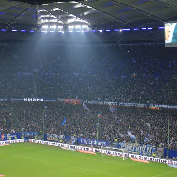 汉堡市的足球俱乐部汉堡SV(HSV,Hamburger SV)尽管今年来战绩不佳,但仍然是德甲成立以来迄今为止唯一一支参加所有赛季德甲比赛并从未降级的球队。这一纪录冠绝所有德甲球队,也因此,汉堡主场英泰竞技场(Imtech Arena)看台上悬挂着一块电子时钟,持续记录着汉堡队留在德甲的时间,彰显着HSV球队的骄傲。 这里同时是2006年德国世界杯的举办地之一,承办了小组赛和淘汰赛的部分比赛,至今仍保持着一流的硬件水准:球场的草皮质量出色,球场内的各项设施也完整齐备。时间允许的话不妨在这里观看一场HSV的德甲比赛,球票可在HSV官方网站上购买。 此外,德国国家队的一些热身赛赛事也会在此体育场进行。