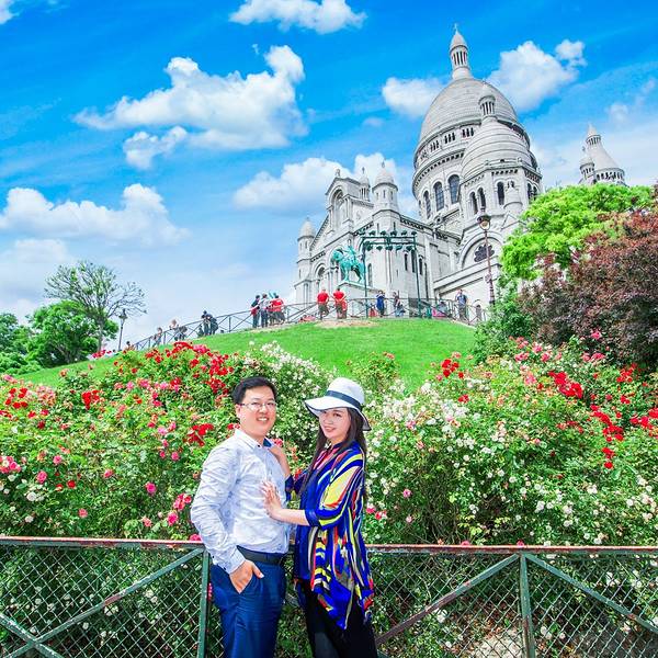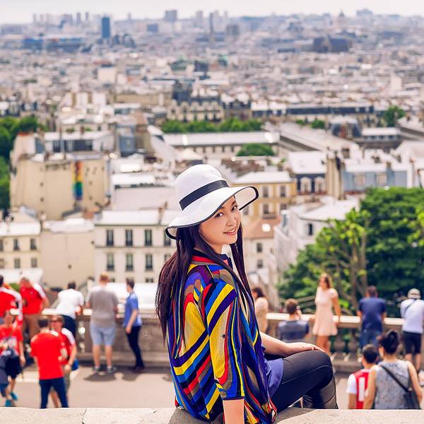 有一张让我记忆犹新,俩人背对着整个巴黎城景,浪漫到爆