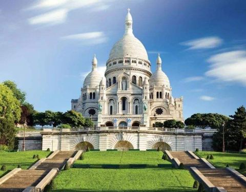 圣心大教堂位于巴黎蒙马特高地 是一座很洁净的白色教堂