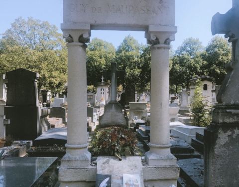 蒙帕纳斯公墓是与拉雪兹神父公墓、蒙马特公墓并列的巴黎三大公墓之一,是许多法国文艺知识界精英的安葬之处。现实主义作家莫泊桑、诗人波德莱尔、数学家庞加莱、汽车工程师雪铁龙、存在主义作家萨特和夫人波伏娃、社会学家涂尔干、新浪潮导演兼作家杜拉斯等人都长眠于此。北门进口处就可以看到萨特和波伏娃的墓,除了二人的姓名和生卒年,什么也没写。白色的墓碑干净肃穆,可能是整个墓地较简单的一个。是很多人来此公墓的原因之一。蒙帕纳斯公墓相较拉雪兹公墓更加亲切,除了名人,可以看到更多像“书店老板和出版人之墓”这样更平凡的墓碑。另外,蒙帕纳斯更像巴黎人,对失败者和异乡人更有恻隐之心。