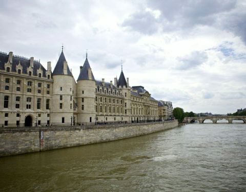 巴黎古监狱建于14世纪,巴黎昔日的王宫和监狱之一,位于巴黎市政厅以西,靠近巴黎圣母院。这是一幢四层的巴洛克式建筑,灰白相间的色泽显得十分的庄严,许多个圆形尖顶的造型突出了它的肃穆与凄凉。这里原是法国皇家寝宫。十四世纪末,法国国王移居卢浮宫和文森城堡,这里逐渐成为司法活动的场所和监狱。法国大革命期间,巴黎古监狱成为重要的羁押场所之一,并设有革命法庭。许多囚犯从这里送往巴黎各处上断头台。其中的囚犯非路易十六的皇后玛丽-安托瓦内特莫属了。王朝复辟时期,国王命人将玛丽-安托瓦内特居住过的牢房改建成一座赎罪教堂,现已向游客们开放参观。