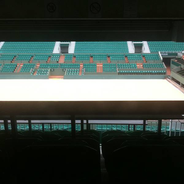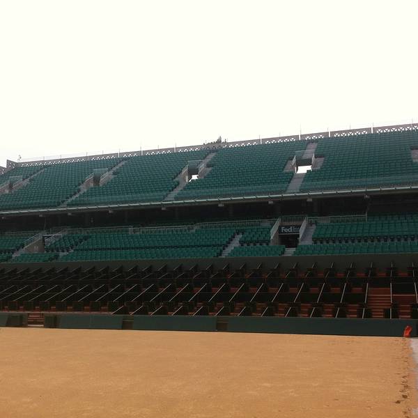 也是著名的红土场地,其实所谓红土,就是在球场上铺了一层橘红色的地毯,不是真正的红土地
