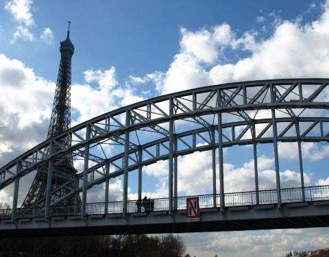 德比利行人桥是塞纳河上比较普通的一座桥梁的,不大造型也没什么特别,但是在德比利桥上欣赏巴黎埃菲尔铁塔是非常不错的角度的,从下往上看特别的壮观