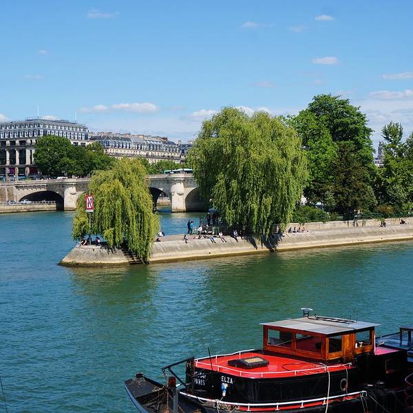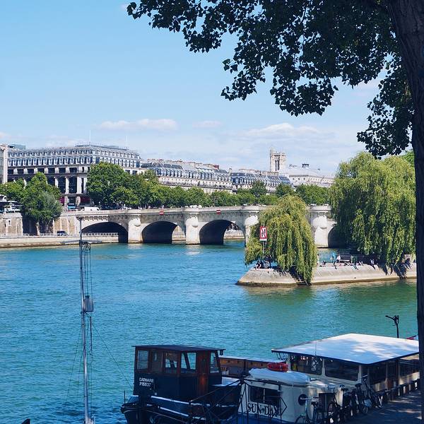 我继续往西岱岛方向步行,这时西岱岛的最西端出现在我的眼前,还有横跨在塞纳河上的白色桥梁——新桥。