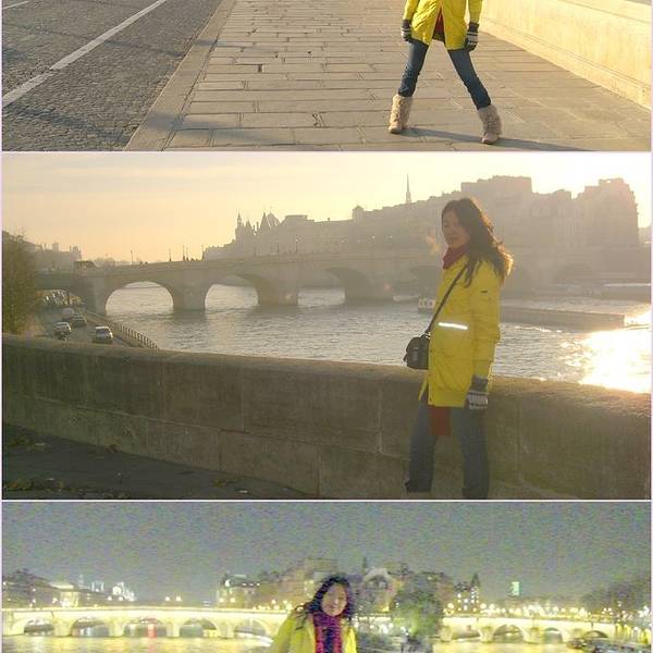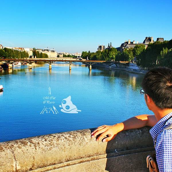 到此一游啦。站在新桥上,非常宽阔呢。新桥上,看夕阳在水面洒下点点金光挨着的便是巴黎新桥,虽然名字叫Pond Neuf,却是塞纳河上最古老的桥。