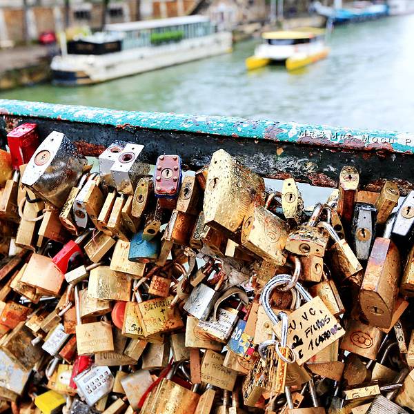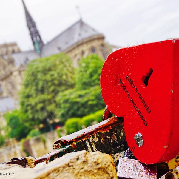 撑了伞,走到旁边的锁桥,看着一把把被恋人锁起来的情人锁,真心祝福每一段感情都能够美好长久。