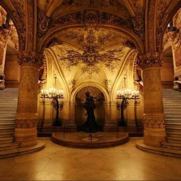 参观《歌剧魅影》的剧场原型,欣赏内部华丽的雕像、大吊灯。