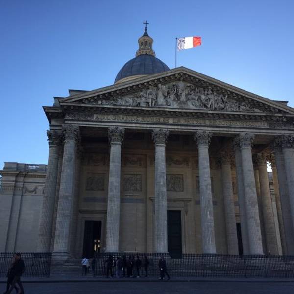 先贤祠位于巴黎塞纳河左岸的拉丁区,曾经是国王路易十五为还愿而建的教堂,之后成为法国众多伟人的安眠之地。历史背景当年国王路易十五病重得非常厉害,他许愿如果此次能够康复,他就会建造一座教堂奉献给圣日内维吾女神。痊愈后,路易十五立即还愿任命建筑师建造了这样一座教堂。现如今,这里安葬着伏尔泰、卢梭、维克多·雨果、居里夫妇和大仲马等伟人,接受来自世界各国人民的景仰。罗马也有类似的建筑——万神殿,虽然名字相同、外形相似,但是功能有所不同。罗马的万神殿是为众神而建,而先贤祠则是文化名人的安葬地。如何参观站立在先贤祠广场上,仰视正殿,这座圆顶的建筑正面入口处正面仿照罗马万神殿,三角型的门楣下是一列柱廊。而门楣下镌刻着一段铭文“Auxgrandshommes,laPatriereconnaissante”(伟人们,祖国感念你们!)。整个建筑是一个古希腊十字形,仅教堂的圆顶就高83米,圆顶上安有一个顶塔,顶塔之上还有一个大十字架。教堂的内部由当时法国国家艺术院的大师们雕梁画栋,为教堂的内部更增添了一分气势恢弘,豪华肃穆。进入教堂抬头看,穹顶中心位置有个天窗,柔和的光线从天窗中泻下来,就像登天之路一样。大殿的四周贴满了巨幅的壁画,这里有几幅描绘圣女热纳维耶芙的事迹。而在另外一侧,则是四幅描述圣女贞德的事迹的画。#傅科摆#大殿正中央有一个球形摆锤,它被称为“傅科(Foucault)摆”。1858年,就在这里,物理学家傅科第一次证明了地球的自转 在大殿的圣坛上供奉着圣女热纳维耶芙。#参观地下墓室#在法国,许多天主教堂都建有地下室。多数在该教堂为天主献身终生的神父临终都会留下遗愿,愿死后仍在这里伴随他的主,继续服待他。先贤祠作为原先的天主教教堂,自然也不会少了地下墓室。大殿的后面就是地下墓室,顺着大殿尾翼左侧的狭窄悬梯直下到地下墓室,走下去眼前豁然出现一个开阔的大厅和一条笔直的拱道,拱道的两侧就是墓室,简单朴素,几乎没有任何装饰。长眠于此的是给法兰西民族带来“平等、自由、博爱”精神和思想的人。至今,共有72位先贤享有这一殊荣。首先映入眼帘的就是伏尔泰和卢梭的陵墓,这两个生前的冤家,死后居然天天头面对彼此。此外,这里还有居里夫人夫妇、雨果和左拉的陵墓。大部分名人没有墓碑,名字被刻在长方形的棺椁上,可以一一辨别出来。#大殿中央的雕像#参观完地下墓室,回到大殿中,在大殿中央的后部,矗立着一组雕像,叫做“国民公会”,上面的正中央是一位女性的雕像,手执长剑。在这座群雕上面,有一幅画,画的是耶稣。站在圆顶上的柱廊上可以俯瞰巴黎的景色,但是出于安全考虑,游客必须在特定的时间内,在导游的陪伴下才能登上圆顶。
