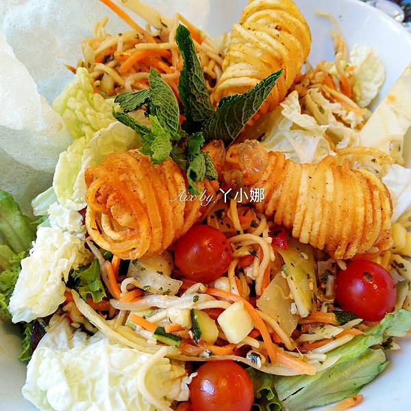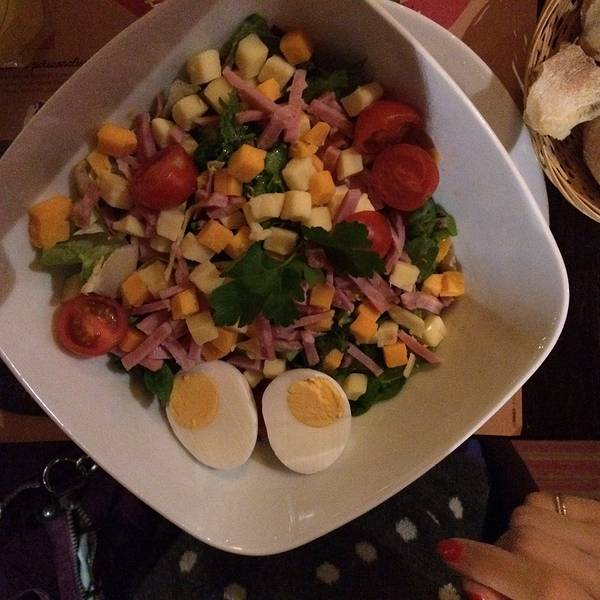 我们吃的这家餐厅是法国非常有名的河马餐厅,连阿尔及利亚都有,这盘沙拉绝对是我吃过最贵的沙拉,18欧左右的样子,其实也就那三颗炸的小虾味道还不错。
