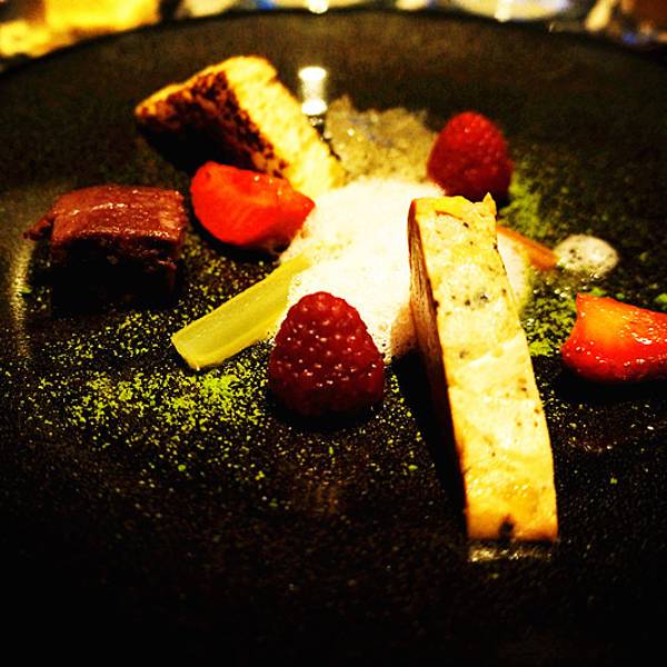 - 最后就由巧克力、水果和芝士组成的甜点结束美好的晚餐吧。红酒鹅肝自然是让这一吻,又多了一份灵魂上的挑逗