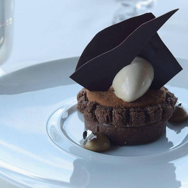 Wild “Turbot” from la Trinité-sur-Mer, black truffles, cooked to “nacre”, exuded of Jerusalem artichokes, hazelnuts, flavour “flouve” oil