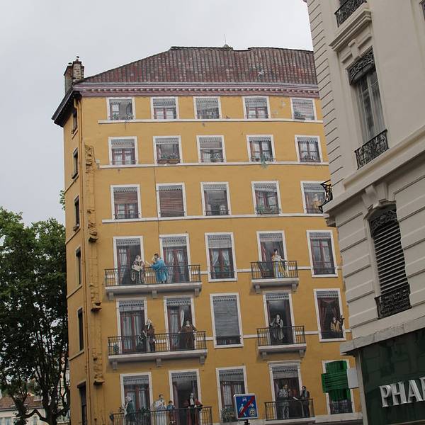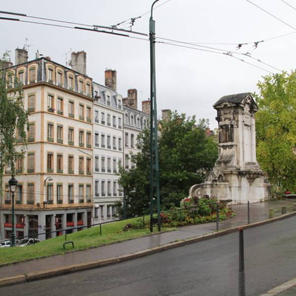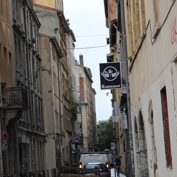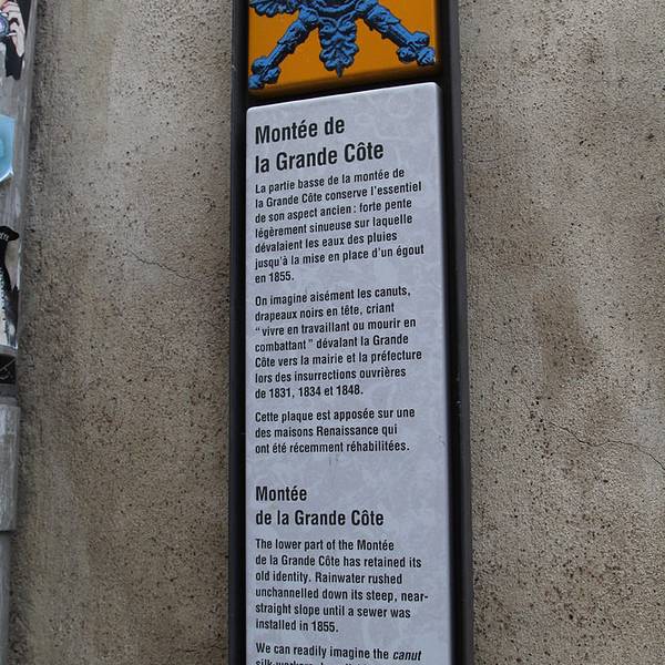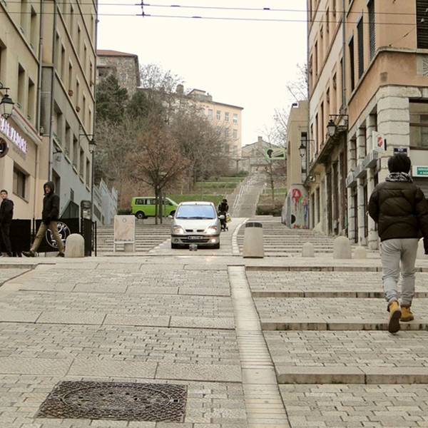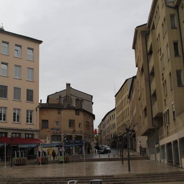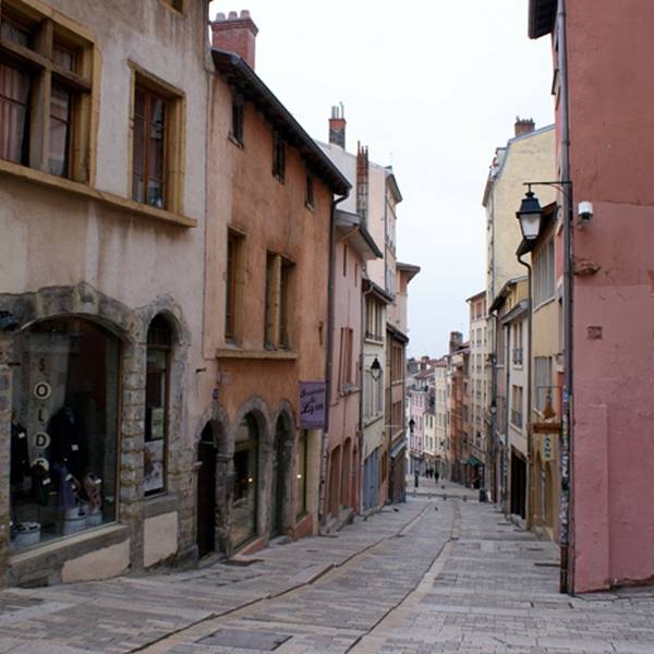 里昂城大多是平原,但红十字区却属于高地。我们沿着一条接沃土广场和红十字区的Montee de la Grande Cote步行街一路往上坡走。LP上这样形容:“丝绸、彩色玻璃制品以及其他视觉艺术品是这条步行街沿线画廊和艺术品店的精华所在。”而我却没感觉到,整条街冷冷清清,或许是淡季的缘故吧。