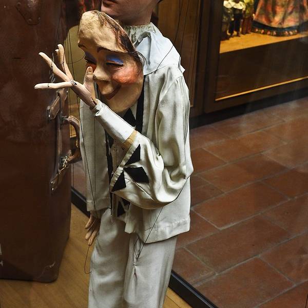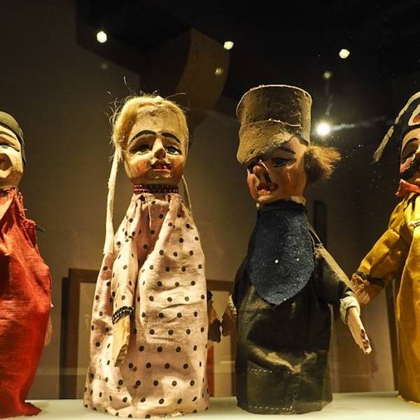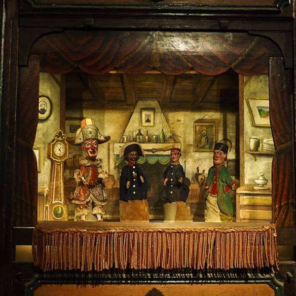 在法国,提起里昂木偶无人不知、无人不晓。听说连法国的大导演卢贝松儿时也对里昂木偶戏情有独钟,甚至说它影响到自己以后所拍的电影。里昂木偶戏诞生于十八世纪,在刚开始人物和造型都十分简单,男主角的造型像当时的工匠:灰色的外套,头发往后梳并以黑色缎带绑住。在这些木偶中最出名的还是那个玩世不恭的Guignol和他那个醉醺醺的朋友Gnaffron。说起Guignol和Gnaffron就要说到他们的生父——Laurent Mourguet。Laurent生于一七六九年,是一个纺织工人。后来Laurent像许多纺织工人一样失了业。为了妻儿他不得不转行做了一名街头拔牙的医生。为了招揽生意和缓解病人的疼痛,他开始在拔牙的时候表演木偶剧,结果竟然大受好评。就这样在1808年Guignol诞生,它是以Laurent自己为原型的一个十八世纪丝织工人的形象,同年Gnaffron诞生,它则是依照Laurent的助手Thomas为原型,是一个爱喝酒的年轻人。Laurent的每次表演都是借助木偶发表政见,质疑当局一丝愚蠢作法。风趣、犀利的语言,诙谐的表演很快就风靡了里昂甚至整个法国。可能和法国人的性情有关,将政治溶入木偶戏之中可以大举成功。