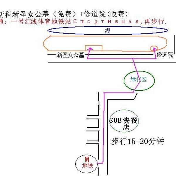 ...吃过自己带去的即食粉早餐后,出发去逛莫斯科的景点,今天先去的点是新圣公墓和新圣女修道院女修道院一早起来,吃过自己带去的即食粉早餐后,出发去逛莫斯科的景点,今天先去的点是新圣公墓和新圣女修道院女修道院。坐地铁铁2号(深绿色)到OKHOTNYY RYAD站后换1乘号(红线)到地铁站Спортивная (Sporti...一早起来,吃过自己带去的即食粉早餐后,出发去逛莫斯科的景点,今天先去的点是新圣公墓和新圣女修道院女修道院。坐地铁铁2号(深绿色)到OKHOTNYY RYAD站后换1乘号(红线)到地铁站Спортивная (Sportivnaya)出来,拿着中俄对照的字条随便问一个路人,都可以指出大方向,大约10分钟就到了新圣女修道院。