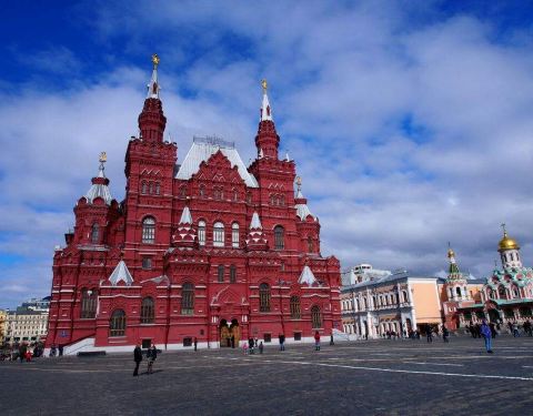 这是一座造型非常美丽、极具俄罗斯风格的深红色建筑,在主体建筑物的四周高耸着对称的塔楼,深红色的...俄罗斯国家历史博物馆坐落在莫斯科红场旁,这是一座造型非常美丽、极具俄罗斯风格的深红色建筑,在主体建筑物的四周高耸着对称的塔楼,深红色的建筑配以白色的点缀,十分醒目。在博物馆建筑物前面,矗立着朱可夫...俄罗斯国家历史博物馆坐落在莫斯科红场旁,这是一座造型非常美丽、极具俄罗斯风格的深红色建筑,在主体建筑物的四周高耸着对称的塔楼,深红色的建筑配以白色的点缀,十分醒目。在博物馆建筑物前面,矗立着朱可夫元帅的雕像。 展开