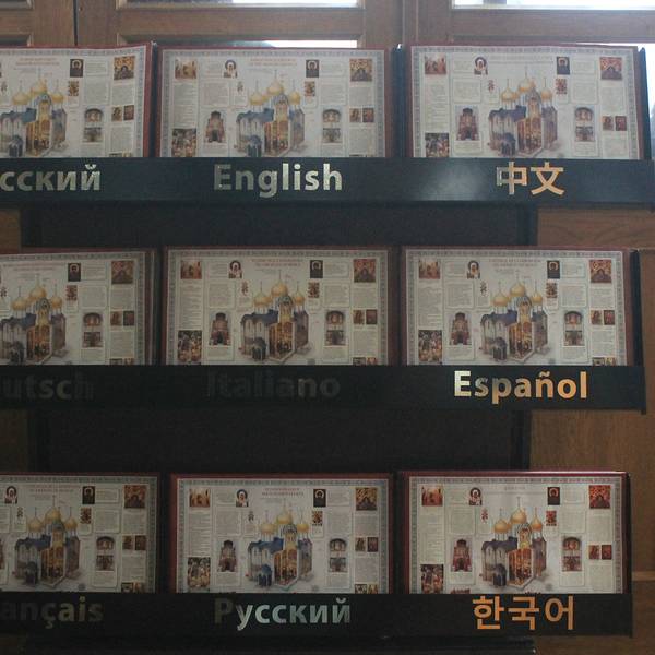 教堂的入口处有9种语言的说明简介,图文并茂,参观游览非常方便。这里也曾经是伊凡大帝举行婚礼的地方