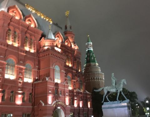 就在红场附近的广场旁。俄罗斯吸引俺的除了古老漂亮的教堂等历史建筑,就是迷人的金秋了,所以俺坚定选择在深秋前来。本来很想在没那么冷的9月来的,怕错过了最美秋色,因为10月来回机票2930元便宜了好几百元啊!幸亏秋色依然。红场旁边就是莫斯科最大的古姆百货商店,竟然部分有中文标示,可见中国游客不少啊!