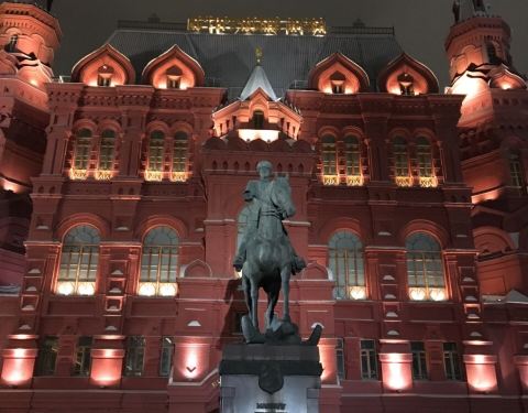 朱可夫纪念碑,朱可夫元帅骑马雕像位于莫斯科红场,背后是国家历史博物馆,整个用青铜打造,雕像于1995年塑立的,至今已22年。