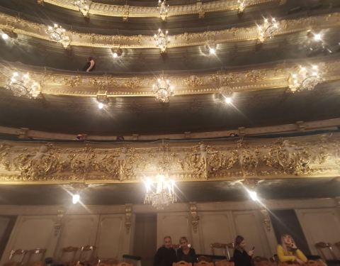 歌剧非常棒,尽管歌手都是用意大利语在唱,字幕是俄罗斯语。尽管坐在第二层的最后一排,但是音乐实在是超级棒,美妙的音乐以及现场的音效让我深深陶醉。如果你也喜欢歌剧,你应该来听一听。
