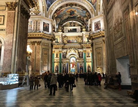 即便不能进去也看得非常满足。喀山大教堂旁边有一条河,沿着河走到对面的街,看到的就是救世主滴血大教堂喀山大教堂一共有94根大圆柱,非常雄伟大气,同样的圆顶教堂是在莫斯科没有见到过的喀山大教堂的柱子像一个臂弯环抱着广场,我们围着教堂走了一圈,那些高大的柱子真是好看。即便不能进去也看得非常满足。喀山大...喀山大教堂一共有94根大圆柱,非常雄伟大气,同样的圆顶教堂是在莫斯科没有见到过的喀山大教堂的柱子像一个臂弯环抱着广场,我们围着教堂走了一圈,那些高大的柱子真是好看。即便不能进去也看得非常满足。喀山大教堂旁边有一条河,沿着河走到对面的街,看到的就是救世主滴血大教堂。 展开