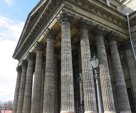 俄罗斯喀山圣母教堂中地位非常高的一座教堂,教堂以古罗马圣彼得大教堂为篮本,它的外观高大的圆柱半...俄罗斯喀山圣母教堂中地位非常高的一座教堂,教堂以古罗马圣彼得大教堂为篮本,它的外观高大的圆柱半弧形的回廊,显现出当时俄罗斯帝国的风格特征。