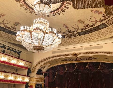 内部非常华丽,其设计能最大限度地供人们从多角度观看。如果可以的话,尽量在这里看表演在圣彼得堡看了一次精彩天鹅湖演出——在便宜的座位上(只要800个卢布的顶层坐席!)。内部非常华丽,其设计能最大限度地供人们从多角度观看。如果可以的话,尽量在这里看表演。