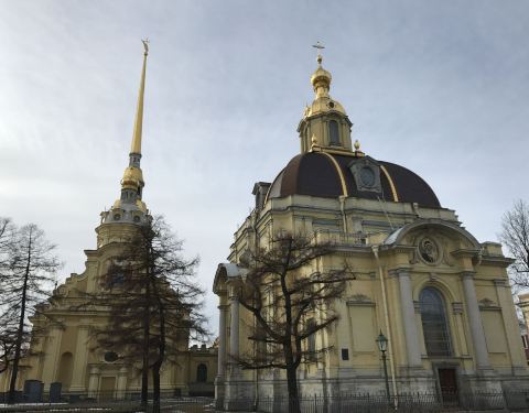 彼得保罗要塞坐落于市中心的涅瓦河畔,是圣彼得堡标志性的古建筑。该要塞于1703年由彼得大帝在兔子岛上奠基,是彼得大帝较早破土动工兴建圣彼得堡的地方,至今已屹立了超过三个世纪。 彼得保罗要塞中有彼得保罗主教座堂、钟楼、圣彼得门、彼得大帝的船屋、造币厂、兵工厂、克龙维尔克炮楼、十二月革命党人纪念碑等建筑物。其中较闻名的当属彼得保罗主教座堂,教堂外表庄严肃穆,内部装饰富丽堂皇,有镀铜的吊灯和有色的水晶枝形灯架。教堂内壁装饰着43幅精雕细镂的木刻雕像。教堂内有从彼得大帝到亚历山大三世的俄国历代沙皇的陵墓,许多大公也附葬于此。教堂挺拔的钟楼尖顶闪闪发光,可谓是俄罗斯在涅瓦河畔以及波罗的海边领土的统治象征。 首先要通过伊万诺夫门。从广场通往要塞城堡的大门叫彼得罗夫门,门上装饰有双头鹰浮雕。环绕要塞的后城墙高12米、宽达2.5~4米,另外还有6个棱堡。其中面向涅瓦河的纳富什金棱堡,每天正午时分会向空中发射一枚空炮弹,向全城居民报时。 要塞南侧是几处与军事相关的建筑,如今已经改为博物馆。圣彼得堡历史博物馆也位于此,这是一座规模庞大、内容丰富的博物馆,展示该地区从石器时代开始的历史资料,还使用了小型模型、录像等来展示,十分富有趣味性。 此外,沿着要塞的城垛散布也是游览彼得保罗要塞的好方式,可以欣赏涅瓦河的迷人景色,眺望对岸的都市景观。