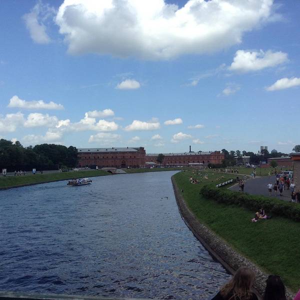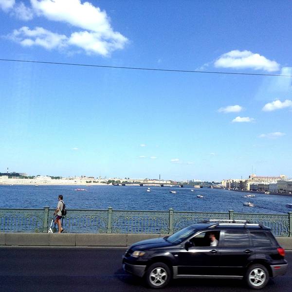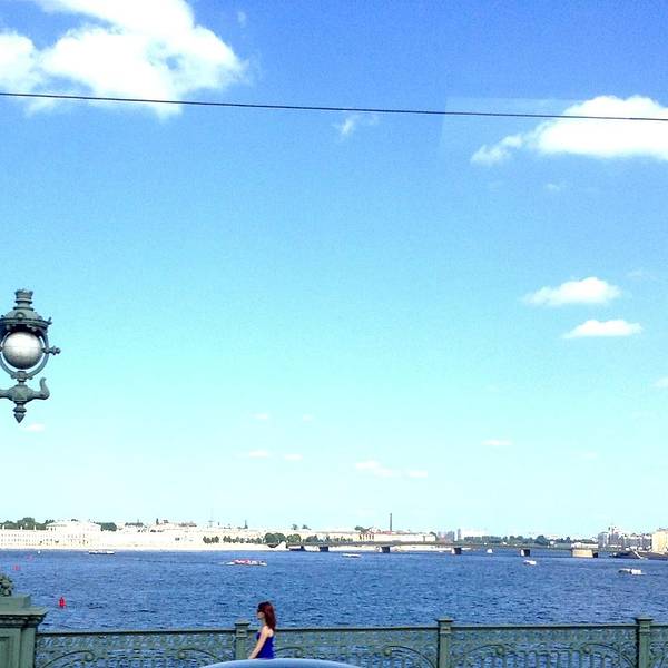 我们在大桥岸边的广场闲逛,虽然正值夏季,但是涅瓦河河面上吹来的凉风习习,空气干爽宜人,感觉阳光温暖而不炎热,广场上的游人和本地家庭都来晒太阳。