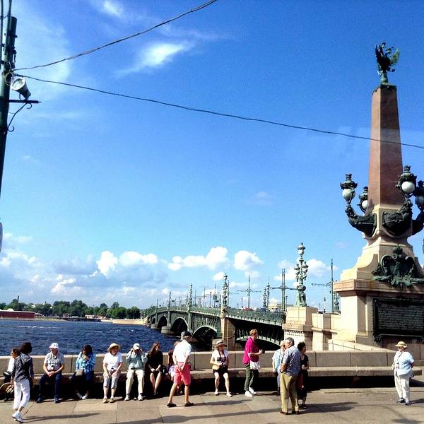 金骆驼 但是涅瓦河河面上吹来的凉风习习,空气干爽宜人,感觉阳光温暖而不炎热,广场上的游人和本地家庭都来晒太阳圣三一大桥位于俄罗斯圣彼得堡,横跨涅瓦河,连接卡缅内岛大街和圣三一广场。